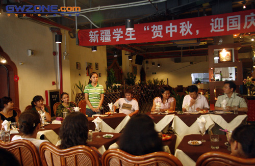 在颇具民族风情的新疆乐曲中,座谈会拉开帷幕。许国彬代表学校向新疆学生表示了节日的问候,并向在座的学生们介绍了学校情况,结合当前特别是奥运后我国地位、影响力上升,民族凝聚力增加的形势,向新疆学生们提出殷切希望:“为国争光,为民族争气,争当优秀中国人!”他语气坚定地表示,相信大家一定能够做到。