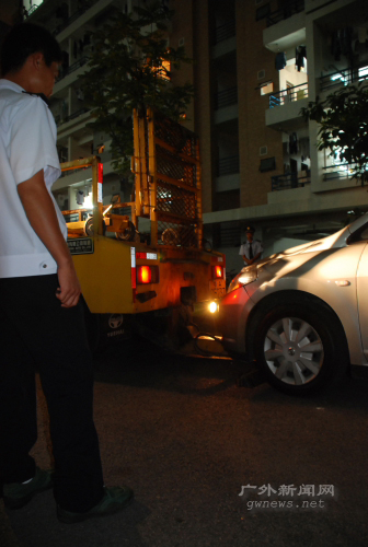 考虑到晚上学生们的晚间休息,保卫处人员最后向小谷围公安局报警,23时许,公安局人员在停车点附近用粉笔留言后,将小轿车用拖车拖走。学生生活区又恢复了宁静。