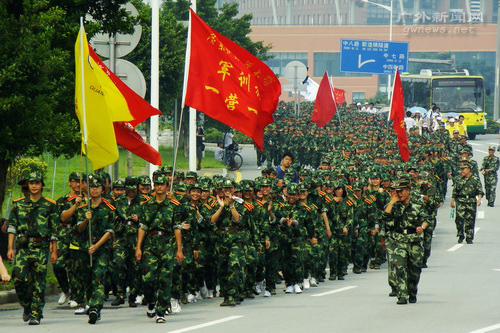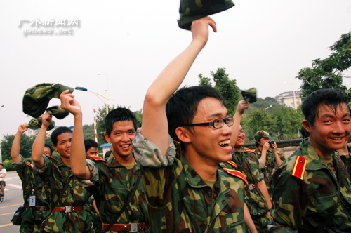 望到广外的标志,新生中迸发出兴奋的叫声。“看,广外到了,快到了。”疲倦的身躯在此刻再次充满了力量。5时左右,全部新兵回到了广外校区。据记者了解得到,这次拉练仅有为数不多的学生掉队。