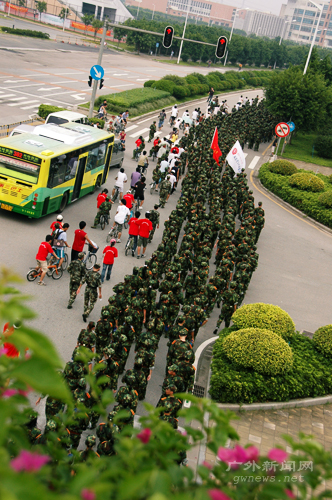 为了帮助新生完成这次08级环大学城拉练,今天,学院团学成员,新生辅导员、指导员,学院领导,医护人员等,都挎上了水壶,与新生们一同踏上了十多公里的的征程。