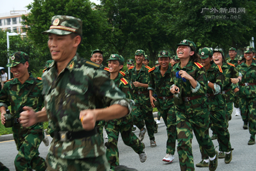 他们坚定的眼神、踏实的脚步以及坚强的意志,在一片橄榄绿中,点缀着青春的色彩。