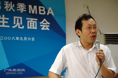 曾用强在发言中着重向学生们介绍了我校MBA教育的特色。在人文环境方面,我校MBA教育具备了一支实力较强的能够开展全英教学的师资队伍,拥有比较完整的研究生教育体系;而自然环境的优良则在于背靠白云山,风景优美。在这样的大环境中,MBA教育的开展会更加顺利和富有成效,学生们可以充分享受MBA的学习和生活。
