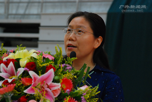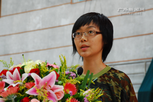 教师代表、国际经济与贸易学院的何元贵教授上台讲话。她首先代表我校教师对新入校的同学们表示热烈的欢迎。她向新生们阐述了中学学习与大学教育的课程设置不同,何元贵认为,大学学习的目的不同于中学,大学的学习是围绕专业素质的培养进行的,课程变化大,新生应该积极了解和适应这样的转变。她期望08级新生可以尽早由广外的“客人”变为“主人”,充实过好每一天。