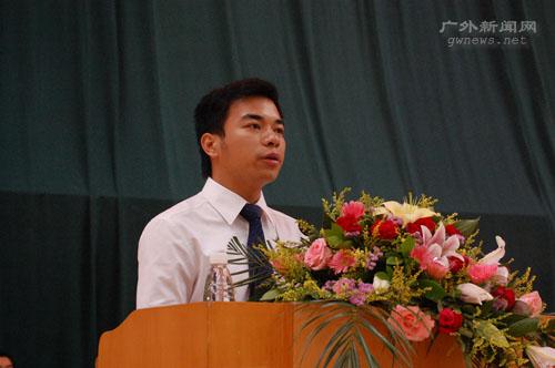 接着,我校学生会主席王沛川发言,他代表在校学生欢迎新生们的到来。他说,环境优美的广外是新生们远航中崭新绚丽的起点,我校学生在国内外的一系列比赛中都取得佳绩,新生们更应该以师兄师姐为榜样,在军训和以后的生活、学习中勇于战胜困难,超越自我。