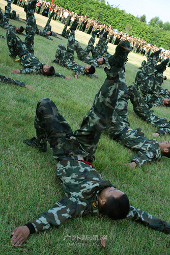 本网讯 9月3日下午,2008年广东外语外贸大学军训交接仪式在南北校区运动场同时隆重举行。