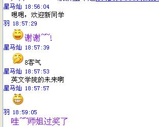 在英文新生的交流群里,每当有一位新生加入时,管理员必定以一句“欢迎新同学”和可爱的QQ表情来表示欢迎之意。管理员也经常在线,为求随时迎接新同学的加入。