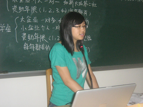 会议开始后,全体与会人员就如何开发捐赠人资源、自强社下学期活动如何开展、如何打造品牌活动和向新长城项目部申请哪些项目等问题进行了商讨。现场气氛极其热烈,大家各抒己见,纷纷发表自己的观点。在半个小时的积极探讨后,各组代表分别上台发表了对以上重大问题的看法和意见。