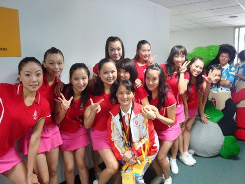 8月10日,拉拉宝贝们在场馆内自豪地挥洒着她们的汗水,为比赛带来一波又一波的热烈气氛。后起之秀龙清泉不负众望,夺下了男子举重首枚金牌。拉拉宝贝们又一次见证了中国队的胜利,用激情的欢呼庆祝中国健儿再次取得骄人成绩。当她们终于见到龙清泉的飒爽英姿时,纷纷与他合影留念,并表示:“一定要学习奥运冠军的精神,把往后的表演做的更好。”