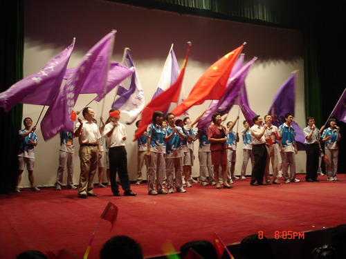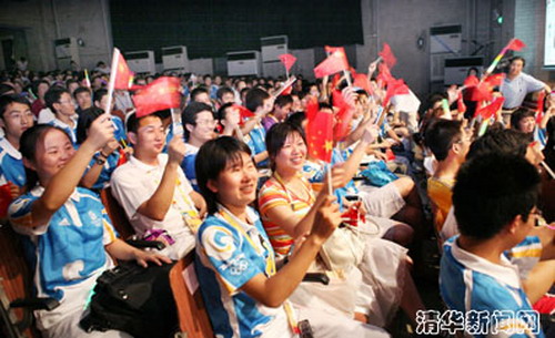 在随后清华校党委常务副书记胡和平的讲话中,我们得知此次清华大学的赵颖慧、胡凯等6位师生运动员将奋战奥运赛场,为国争光。于是,我们与清华学子一道为他们欢呼祝福。此时此刻,我感觉到广东志愿者已与清华同事们融为一个坚强的集体。