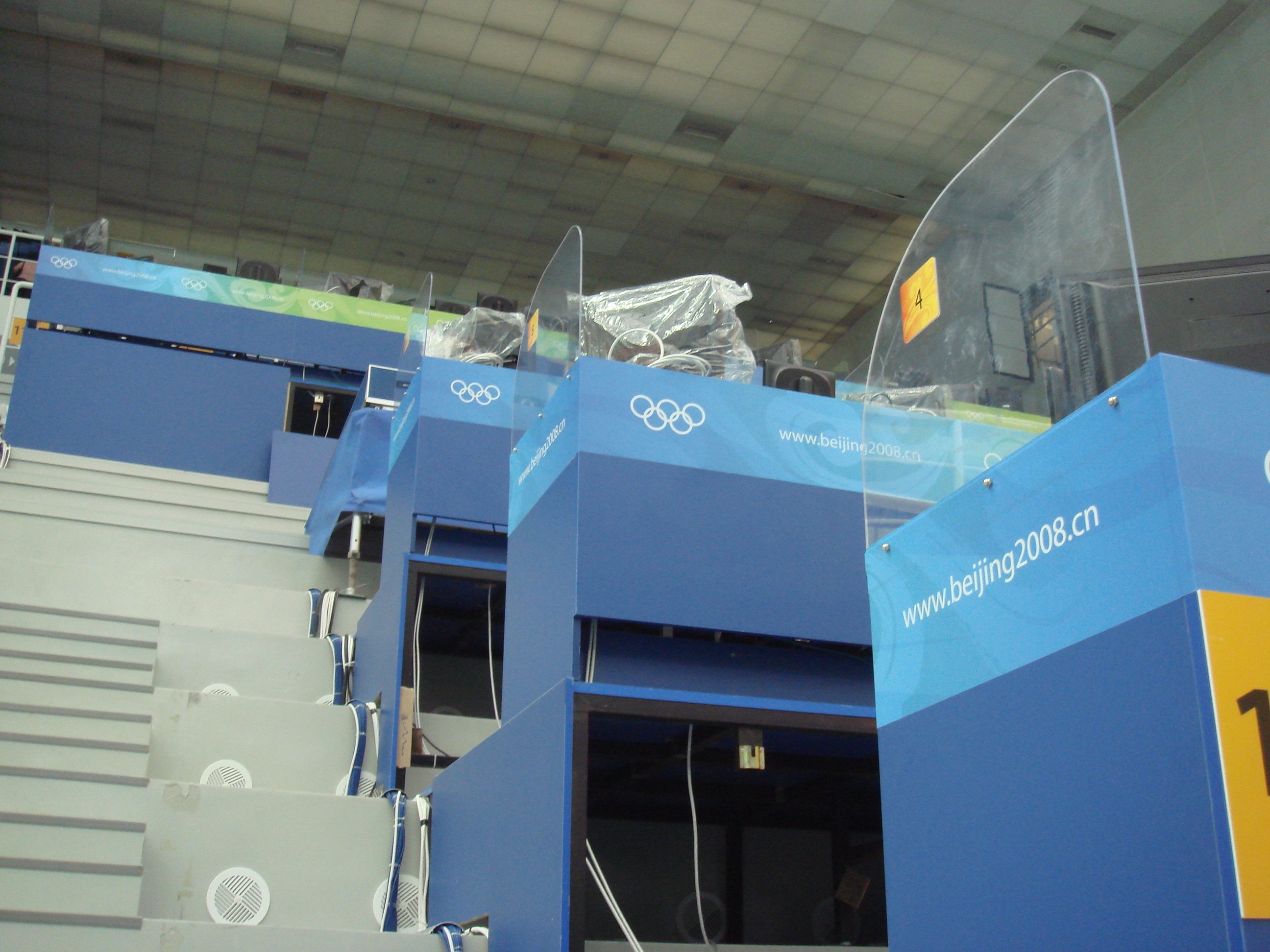 记者的压力也就是我们志愿者的压力,志愿者派发成绩公报的速度稍一慢,精神处于高度紧张状态的记者就有可能鼓噪,甚至对志愿者恶言相向;与此同时,由于场馆的记者看台席均属临时搭建结构,其上落阶梯极为陡峭,如何安全而又快速地将公告送到记者手中,是我们必须攻克的一个难关。