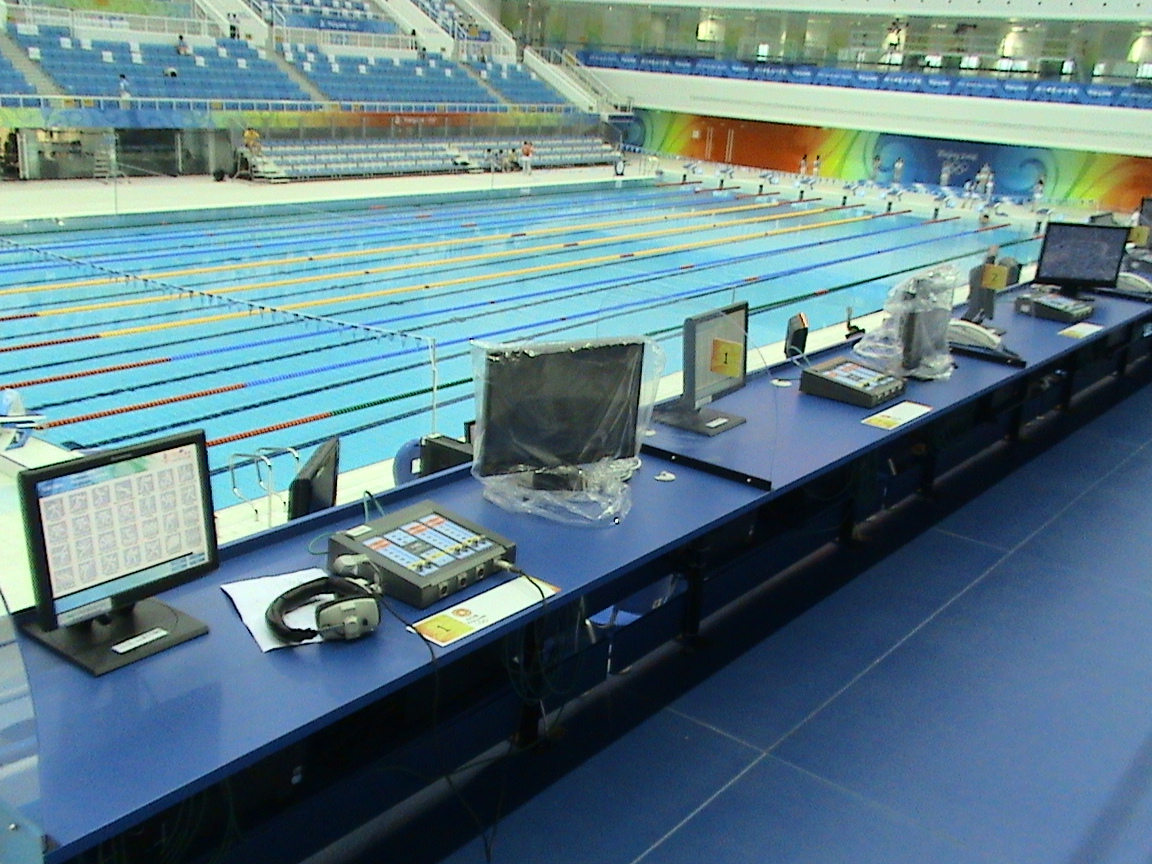 为了杜绝不愉快事件的发生,我们在主管们的指导下试验了几种接收和派发成绩公报的方法,最终确定了一个效率最高的方案。据估计,到正式开赛时,由于游泳和跳水项目经常同时进行,我们每人每天有可能在看台席上下奔跑30次以上,这对我们的体力是极大的考验。然而通过训练,我们对于工作的难度已有充分的心理准备。