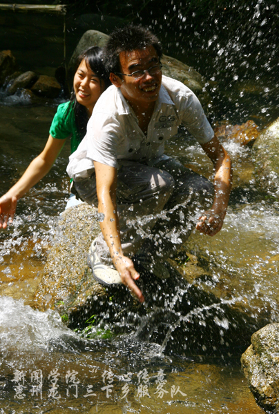 7月23日:征程第六天,出游。南昆山泉好清凉,老师玩起打水战。泉笑了,老师也笑了。
