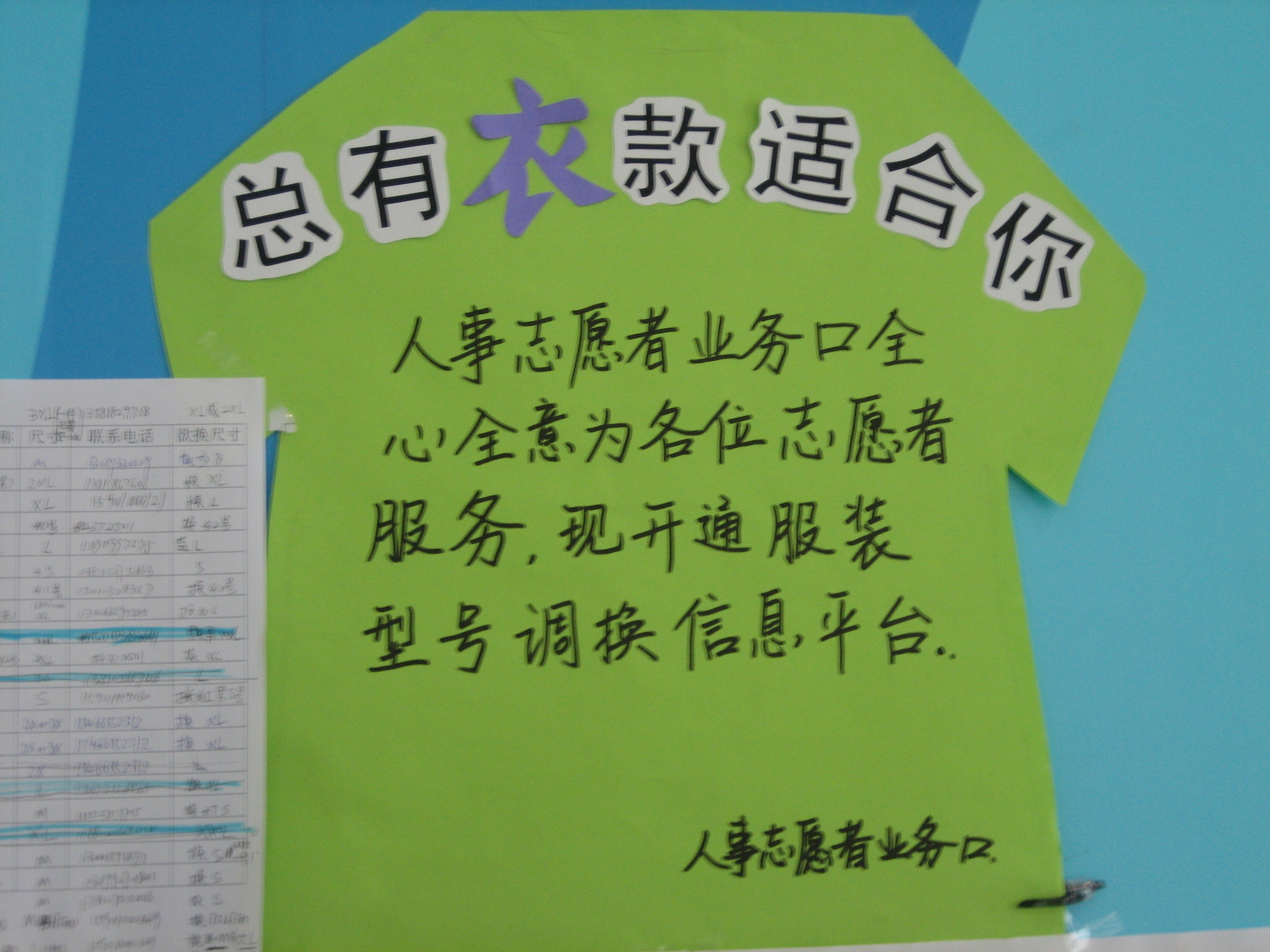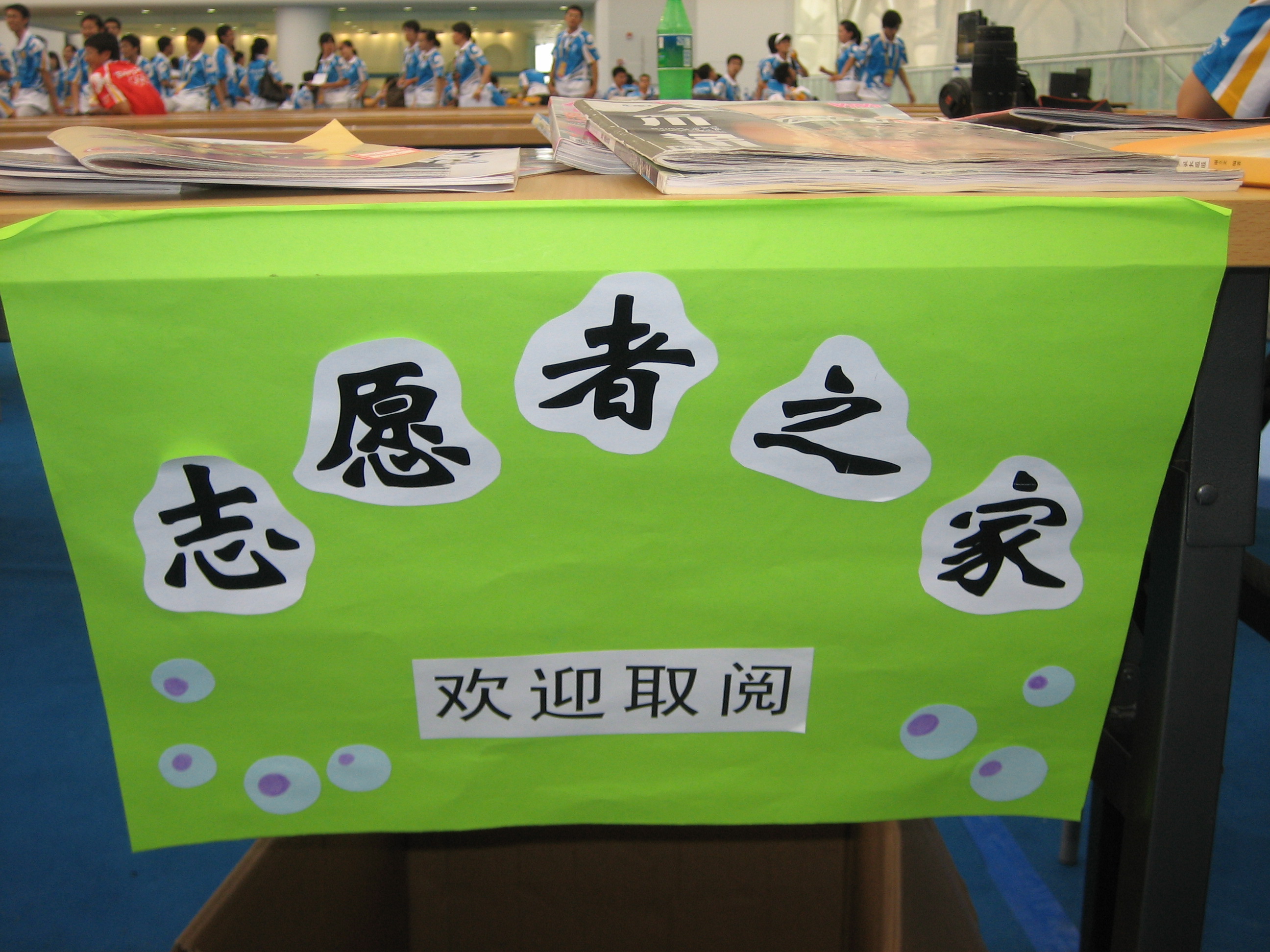 今天吃饭的时候猛地发现,餐饮中心的宣传栏上一片花花绿绿,“奥运者之家”也坐满了就餐或者交流的志愿者。签到签出室的外墙也是一道很靓丽的风景。天气预报、志愿者服装调换等信息应有尽有。特别是上面的“每日生日”,让人觉得很感动,很贴心。当天生日的志愿者的名字会贴出来,让同事们知道。