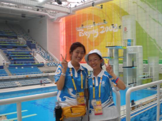 我所在的业务口是交通服务助理,和广外胡老师在同一组。我们的工作主要是负责运动员、媒体、贵宾以及技术官员等客户群的入场引导,可以说我们的业务口是最先接触所有来参赛、观赛的人群,这是种责任,同时也是种挑战。我们需要时刻保持微笑迎接每一位来到水立方的朋友。在短短一周时间内,我和清华的同胞们共同奋战,有欢笑有汗水,也有满满的收获。