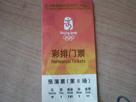 今天值得开心的是,我很幸运地抽到了去鸟巢观看奥运会开幕式第二次预演的门票。