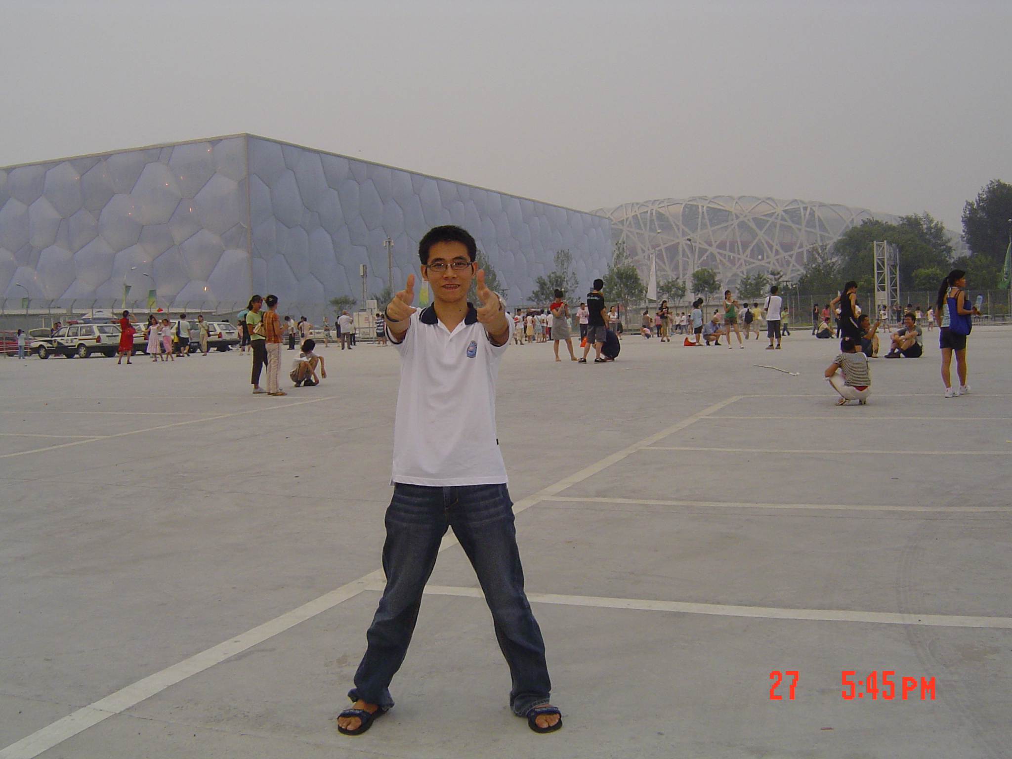 在宿舍安顿下来不久,就接到了一个通知,我们业务口(新闻运行)的经理叫我们去“水立方”领志愿者证和志愿者服,这也就意味着我们新闻运行业务口的同学将先于其他同学一赌“水立方”的风采。当在人行天桥上看到“水立方”和“鸟巢”时,一个词概括了我们的感受:亲切。它们和电视上见到的一模一样,“鸟巢”的雄伟壮观和“水立方”的含蓄典雅交相呼应。当我们来到安检口,高大的铁丝网和军人同志脸上的严肃意味着:奥运的安检是十分严格的,这是一届“平安的奥运”。