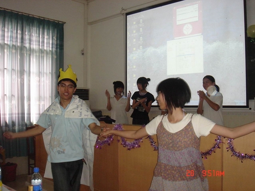 搞笑版的白雪公主节目上,王子由老师扮演