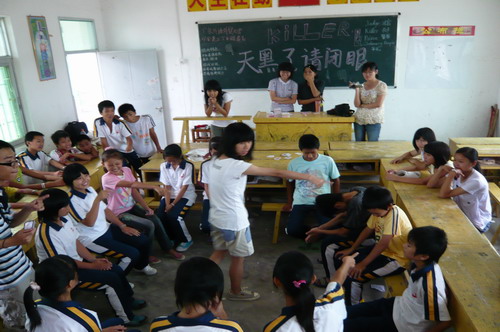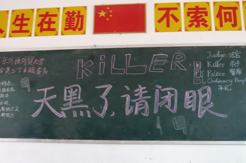 本网讯 7月27日下午的班会课,气氛格外特别,“天黑了,请闭眼”六个醒目的大字吸引了孩子们的目光。原来是经贸饶平全英三下乡队组织学生玩起了风靡一时的killer游戏。