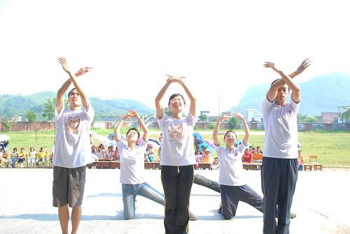 本网讯 7月28日上午,英文学院情系三排瑶乡志愿服务队全体队员在三排中学操场上为全体同学献上了一场精彩纷呈的文艺汇演告别会。节目包括激情健美操、优雅国标舞、有趣话剧小品以及各班学生合唱比赛等等,整场汇演气氛活跃,学生们反响热烈。