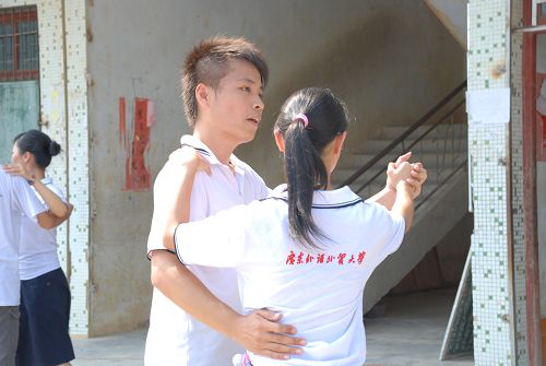 优雅国标舞把整场表演推向了一个小高潮。女队员们身穿长裙,翩翩起舞,男队员们也和着音乐,风度优雅。台下的学生们看得十分入迷,不时爆发出热烈的掌声和叫好声。话剧小品《广外学生会招新记》成为了全场表演最大的亮点。队员们把大一入学时各部门的招新趣事改写成了剧本,自导自演了这场“招新大戏”。诙谐幽默的台词、夸张搞笑的动作使得台下笑声掌声不断。由于没有麦克风,演出队员们都是扯着嗓子喊出台词,以确保每位观众都听得见。