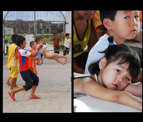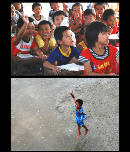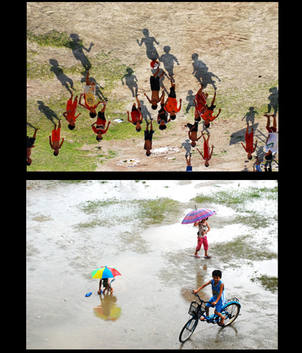 烈日下,暴雨中,不变的是孩子欢乐的笑容。。