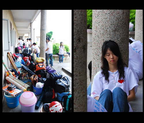 初来乍到,还没有安营扎寨,在走廊上休息一下。