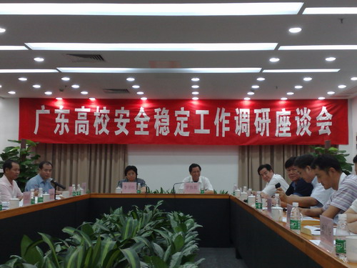 月26日上午,广东省高校安全稳定工作调研座谈会在华南理工大学大学城校区召开。教育部副部长李卫红出席会议,广州大学城各高校主要校领导和部分高校保卫处领导参加了座谈会。我校党委副书记许国彬出席了会议,并代表学校做了发言。各高校在会上汇报了本校在校园安全稳定上所作的工作,以及对不稳定因素的排查情况。会议由广东省教育厅厅长罗伟其主持。