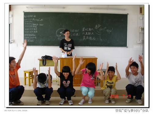编者按 管理学院“爱与梦同行”队的义教组老师都充满活力与激情,知识广博,能歌善舞,同时不缺幽默感,深受学生们欢迎。他们的义教课程不仅包括了我校的特色英语课,还包含了当地学生们平时较少接触的舞蹈课(如华尔兹)、英文音乐课、绘画课、应急知识课、拳术课、Role Play课等等。特别地,义教组还创新地进行了Morning Call(唤醒睡意)活动。