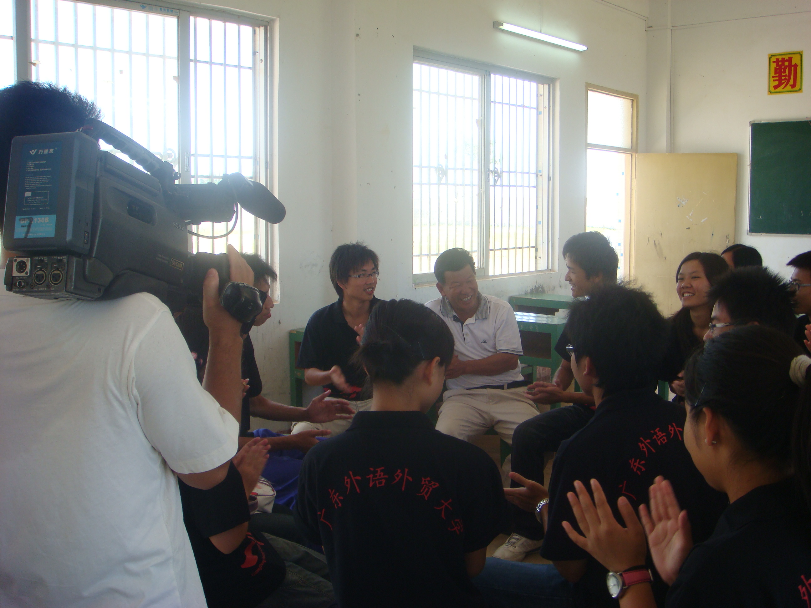 午饭时间,海丰电视台的记者来到下乡队伍的驻地大嶂小学,采访这十天来一直向队员们无偿提供饭菜和车辆的王叔叔。 电视台记者拍摄了队员们与王叔叔日常交流的场景。王叔叔是当地著名的企业家,虽然和队员们素未谋面,但是他将队员们当作自己的孩子一样看待,处处为队员们着想,尽力为队员们解决难题。与王叔叔相处了将近十天,队员与王叔叔的关系也变得十分友好、融洽,大家几乎成了无话不谈的好朋友,从家常小事到为人处世的大道理,王叔叔和队员们总是有说不完的话题。