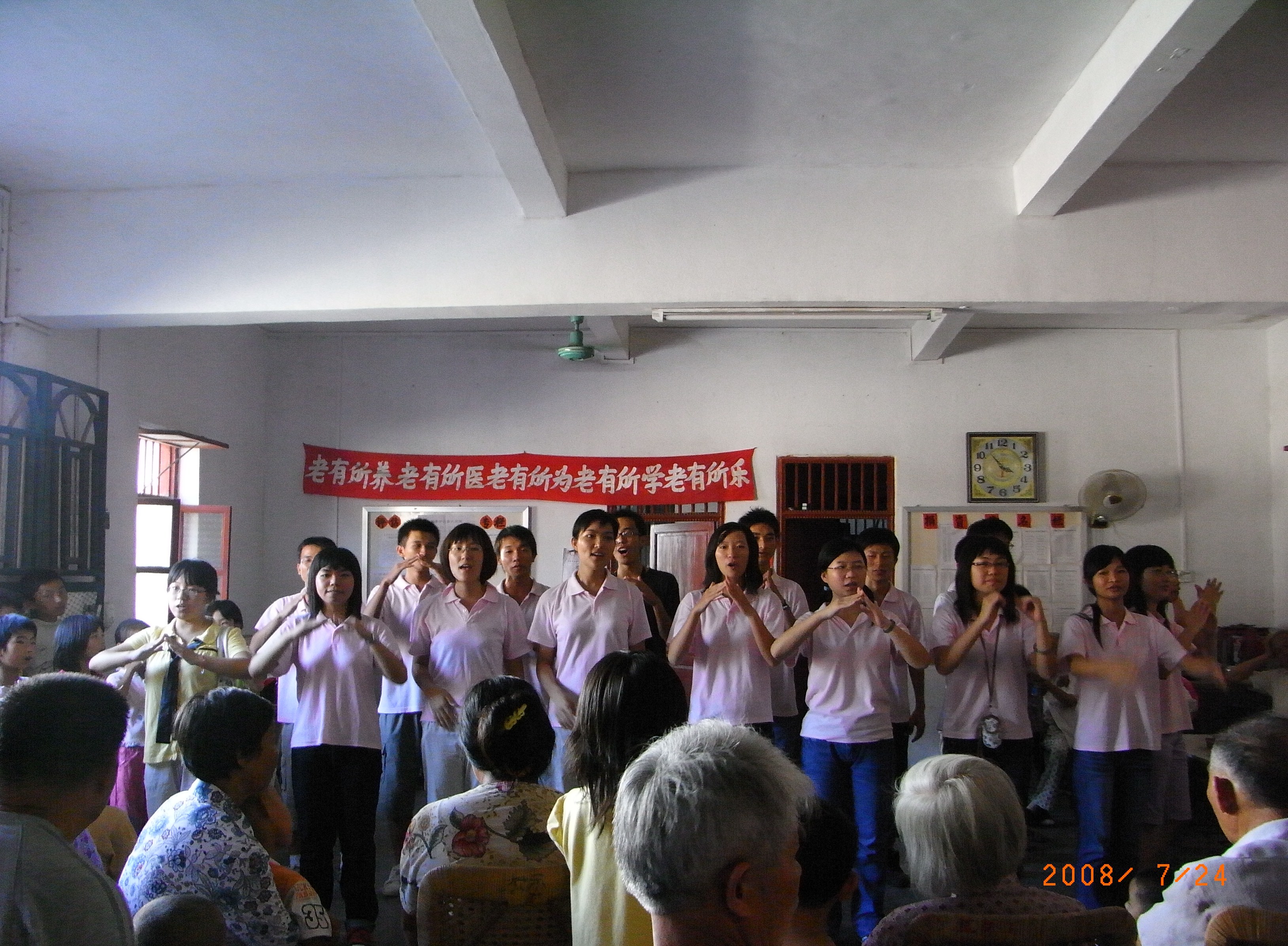 本网讯 7月25日下午,求是学会畲江“三下乡”服务队的20名队员在梅县畲江镇莲江村老人活动中心进行了一场以“关爱夕阳行——颂改革,送温暖”为主题的汇演活动。此次活动内容形式多样化,既有多姿多彩的文娱演出,也有改革政策知识宣讲,还有养生健身方法指导。活动高潮迭起,深受当地民众好评。