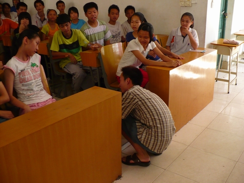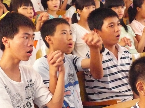 本网讯 7月24日,一个关于“大难临头,如何自救”的地震逃生专题讲座在阳春三中报告厅举行。主讲人吴达明和庞颖欣给阳春三中七年级的一百多名同学呈献了一个精彩和难忘的讲座。整场讲座历时一个半小时,内容丰富、形式多样、气氛活跃,让同学们学到逃生技能的同时,收获了不少乐趣。
