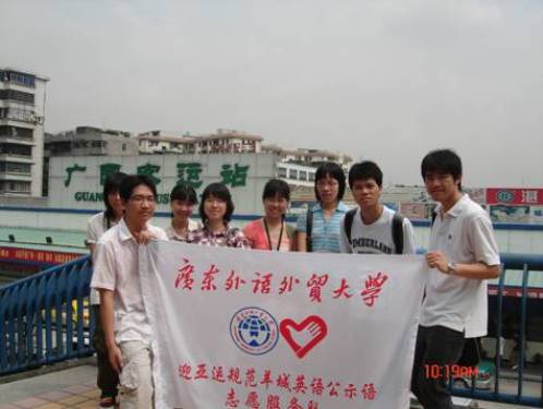本网讯 为了迎接2010年在广州举办的亚运会,我校青年志愿者行动指导中心秉承“明德尚行,学贯中西”的校训,以“以专业知识服务人,以奉献精神服务人”的宗旨,践行“志愿服务育人”的理念,开展了“迎亚运规范羊城英语公示语课题研究项目”。我校商英学院06英语(国贸)1班9名同学热烈响应号召,组成Beautifiers服务队,负责白云区交通站点类的英语公示语纠正项目。