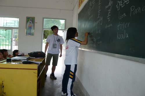 全英三下乡队长梁苏叶在采访中介绍,全英班的同学发挥自己的优势,用活泼的形式激发学生学习热情。除了英语竞赛,他们还设置了情景口语对话、学唱英文歌等趣味英语课程,取得了良好效果,学生们在愉悦的气氛中渐入佳境。