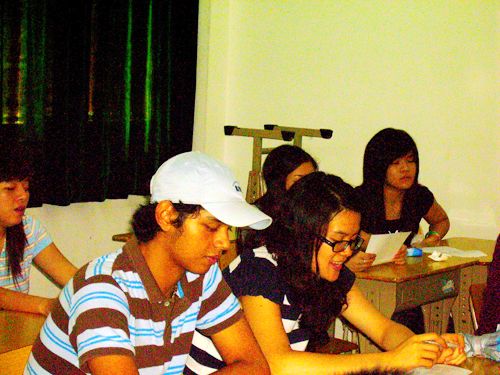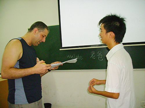 于是,在旁观看的李同学灵机一动,临时加了bargain 这一教学环节。在教会了他们如何用粤语讨价还价之后,“甘贵”、“可晤可以平嘀”之类的bargain话语可真是“泛滥成灾”。有的留学生讨价心切,将“几多钱一斤”说成了“几多斤一钱”,将“老板”说成“老爸”等等。不过聪明的留学生在在场老师的指正下很快改正了错误,最终成功地说服了“店主”买到了物美价廉的水果。