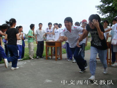 最后举行的是一场师生友谊赛——踩气球。在学生的强烈要求下,害怕气球爆炸的老师也克服了恐惧,参与其中。在划定的场地内,老师和学生互相踩爆气球,有的女老师躲在场地的角落里以为平安无事,却还是被机灵的学生踩爆了气球。