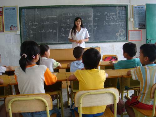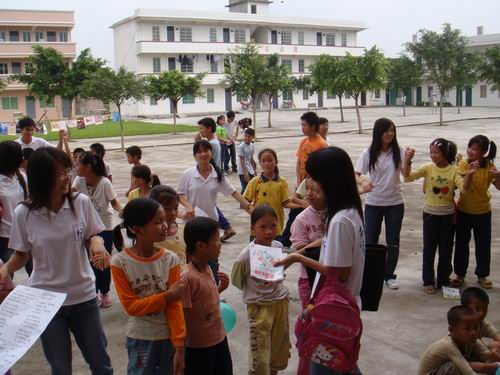 下午,义教活动正式开始。2时30分,整个校园响起了琅琅书声,各位“老师们”也都站上了讲台,以多种多样的形式为学生们上了第一节课——趣味英语。为了突出“趣味性”这一主旋律,老师们使出了浑身解数——有的老师通过做游戏的方式,带领学生学习各种校园建筑的英语单词;有的则教同学们唱英文歌;还有的用颜色鲜艳的卡纸来帮助同学们记单词。小朋友们更是专心致志地配合老师上完这精彩的一课。