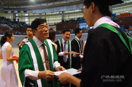 图/郑东璇) 徐真华认为,广外南校区首批毕业生是特殊的一届,是意义非凡的一届——“这一届毕业生见证大学城发展,与大学城一起成长”。回想四年前的大学城,徐真华慨叹当时生活环境不好、学习条件不全、设施不足,同时也赞叹04级学生们的适应性和忍耐力,他为学生们对学校的宽容和谅解表示感谢。