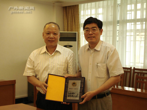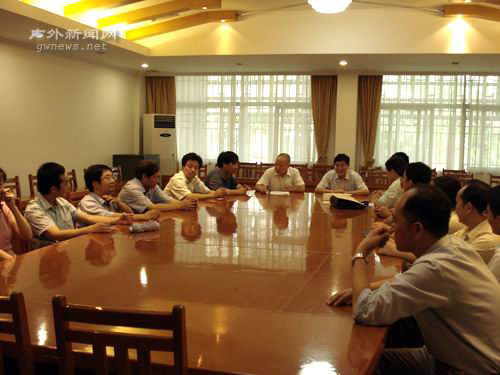 本网讯 6月19日下午,广东省银监局与经贸、信息学院教师代表座谈会在北校区行政办公楼第二会议室举行。广东省银监局局长彭志坚,经贸学院副院长易行健,信息学院副院长蒋盛益以及来自经贸学院和信息学院的教师代表参加了会议。会前,校党委书记、校长徐真华向彭志坚赠送了纪念品。