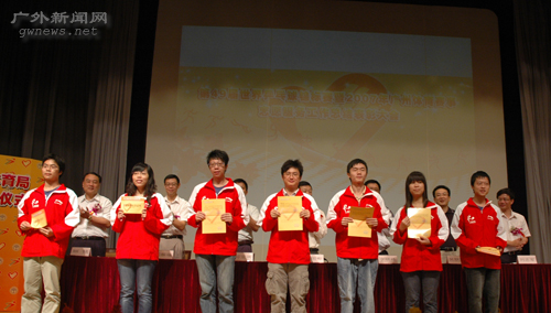 本次大会由广州体育局、华南农业大学和我校联合主办。广东外语外贸大学党委副书记许国彬、广州市体育局巡视员李晓峰、校团委书记刘志军、华南农业大学团委书记邱亚洪、团市委学校部部长吴耿淡、华南农业大学外国语学院副院长王振福、广州体育馆总经理顾铭、广州市体育局组织人事处处长邓广庭等出席了表彰大会。