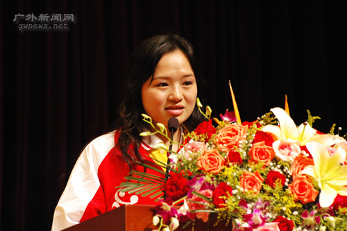 来自华南农业大学的志愿者代表黄嘉慧有着丰富的志愿服务经验,她在大会上发言时说到:“志愿者的工作是辛苦的,但是过程却是快乐的。”体育赛事见证了她的成长,使她的人格和品行得到了升华,同时她也深感肩上责任重大。而来自我校的优秀志愿者代表路施斯则道出了我校380多名世乒赛志愿者的心声,他们用自己的行动诠释了“奉献、友爱、互助、进步”的志愿者精神。