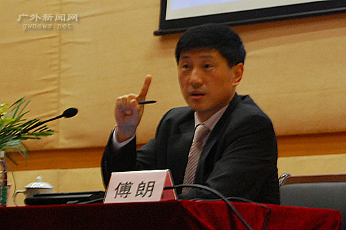 本网讯 时事大讲堂第六讲于6月12日下午在南校图书馆多功能报告厅精彩开讲,广东省人民政府外事办公室主任傅朗博士做了题为“从新一轮思想解放看我省‘走出去’战略实施”的报告,我校副校长仲伟合、党委学生工作部部长植秀聪、国际交流处处长焦方太等出席。报告会由党委学生工作部和国际交流处主办,植秀聪主持。