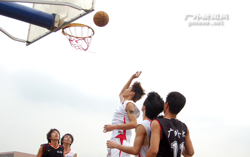 出场仪式过后,万众瞩目的广外南北全明星对抗赛正式打响。一开场,双方就在场上展开了激烈的角逐。与远近闻名的NBA全明星赛有所不同,我校这次的全明星对抗赛可谓真刀真枪,寸土必争。场上10位球员早已摩拳擦掌,比赛一触即发。