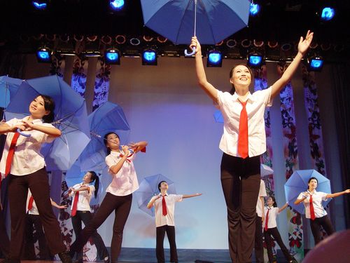 山水灵动间,清脆的响铃,蓝色的民族风,悠扬的山歌——舞蹈《走在山水间》仿佛将他们带回那个仍带点稚嫩的最初。紧接着是轻轻扬起的吉他声,时而欢快,时而带点忧伤,淡淡的仿佛在讲述着那段青涩的岁月和你我他的故事;从观众席中缓缓传来的《那些花儿》和《同桌的你》更是道出了学子们共同的心声,轻轻地和着节奏拍掌,忆起那一幕幕,静静地怀念;突然,笔锋一转,热辣的舞蹈,闪亮的身段,歌舞《爱之初体验》引来现场掌声尖叫不断。