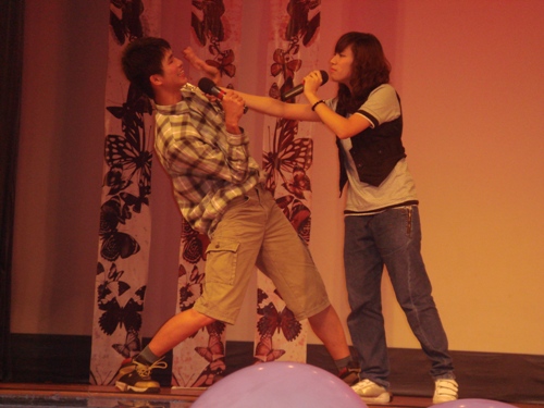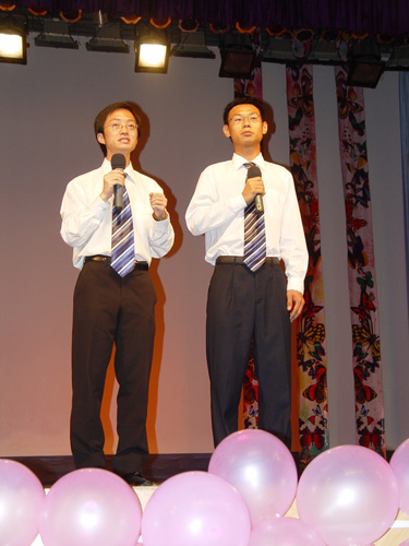 两位大四的毕业生在母校表演相声