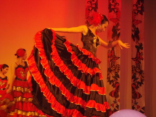 最后,04级的学生们再次为大家献上他们热情洋溢的西班牙舞蹈。挥动的裙摆、炫目的舞姿、一个华丽的转身,仿佛一簇簇鲜红的火苗,纪念这段激情燃烧的岁月,从此更坚强地微笑面对未来。同时也不忘饮水思源,一曲《疼爱妈妈》结束了晚会。