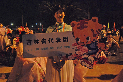 民族运动会开幕式上我校的一名"微笑引导员"