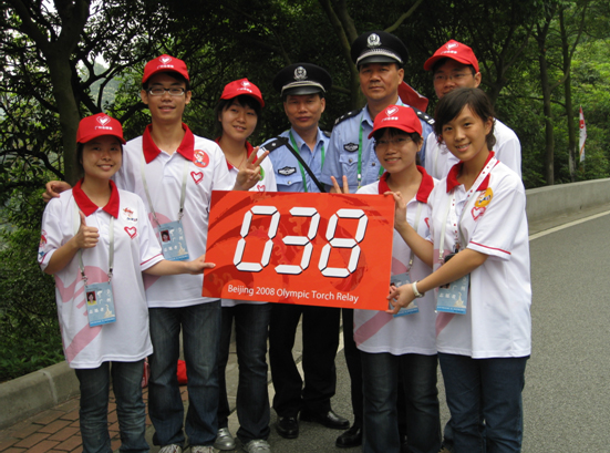 奥运火炬到达广州,我校以学生会名义自发组织了一个圣火传递志愿者团队。当时,培训和彩排都是临时通知的,志愿者们自行调整好时间。