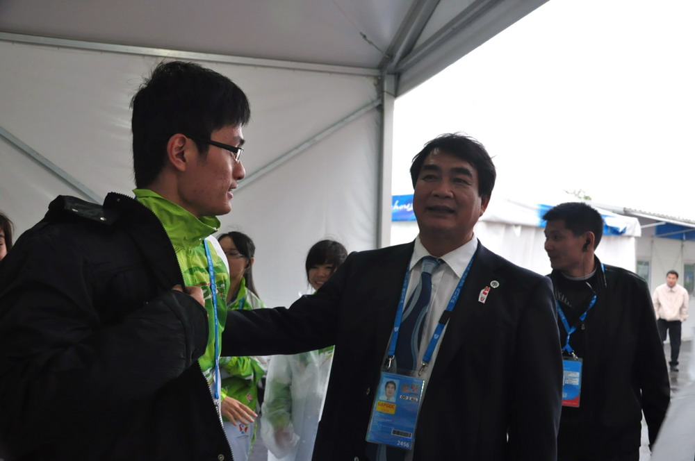 考虑到突发降温的情况,为志愿者的身体着想,15日下午一批特别为志愿者准备的棉袄被送到了我校体育馆。陈子锐和林少娜亲自为志愿者送上棉袄。在观众入口处,负责安检的志愿者们看到棉袄,都纷纷说道:“太好了!”陈子锐表示,(天气这么冷)站在室外的志愿者太辛苦了,“要是棉袄不够的话赶紧去领,别冷着了。待会还会给你们送来姜汤和热奶茶。”