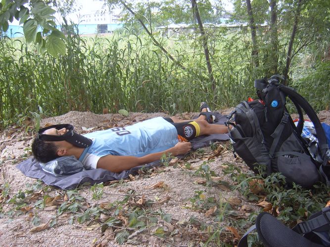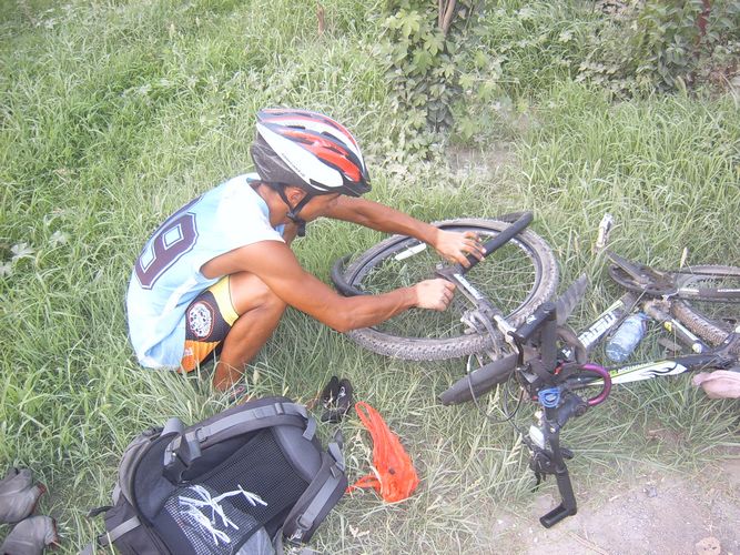 由于第一次骑自行车远行缺乏经验,他们第一天便在清远山区遇到了困难。原本打算在天黑前骑行200多公里到达第一个住宿处,结果实际骑行路程比原计划要少,一天下来只走了160多公里,因此,他们不得不在人生路地不熟的清远山区摸黑赶路。他们打着手电筒,赶路,迷路,再回头,再赶路。要知道,清远是延绵几公里杳无人烟的山区,那山头更是“山重水复疑无路”般的盘旋曲折。所幸他们最终“柳暗花明又一村”,找到了小旅馆安顿下来。
