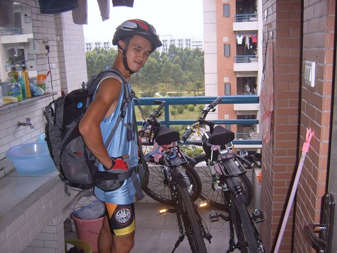 廖国添和梁策敲两小子可谓初生牛犊不怕虎,大一下学期便摩拳擦掌,跃跃欲试地想骑车去北京,并为此准备了整整一个学期:买车、装备、市区试骑、环大学城骑行练习。终于在7月15日清晨,他们背上硕大的行囊踏上了北上进京的征途。
